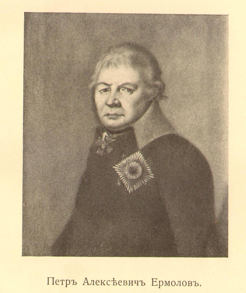 Ермолов Петр Алексеевич статский советник Мценский уездный предводитель дворянства (1782-1785). С 1785 года в течение семи лет он служил председателем Орловской палаты гражданского суда. Правитель канцелярии генерал-прокурора графа А. Н. Самойлова.