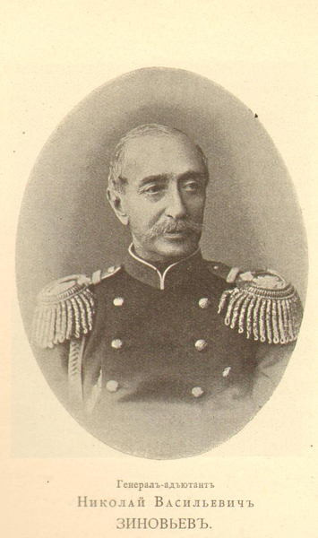 Зиновьев Николай Васильевич генерал-адъютант Начал службу в лейб-гвардии Измайловском полку; в 1828 участвовал в осаде крепости Варны. В 1844 был назначен директором Пажеского корпуса. Член александровского комитета о раненых (с 1860), почетный опеку