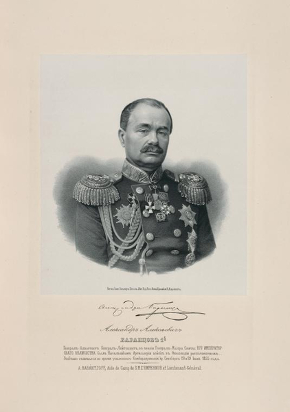 Баранцов Александр Алексеевич генерал от артиллерии; граф Русский военный деятель, генерал от артиллерии (1868), генерал-адъютант (1855), член Государственного совета (1881), граф (1881); начальник Главного артиллерийского управления (1862-1881)