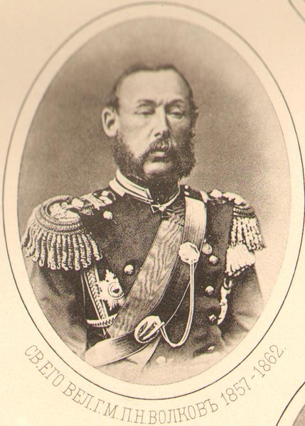 Волков Петр Николаевич генерал от кавалерии Генерал-майор свиты императора Александра II. Член Военного совета. Директор Дома призрения престарелых и увечных, учрежденного в память императора императора Николая I.